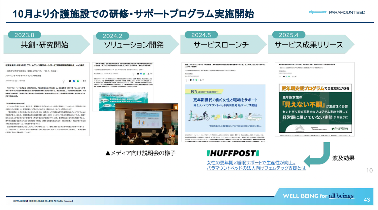 2025年10月からは介護施設での研修・サポートプログラムも開始。このプログラムでは、介護現場で働く女性の心身の負担を軽減し、より良い働き方の実現を目指していきます。事業担当者の大槻は「今後も、女性のライフステージに寄り添い、“自分に合った眠り”を体験できる社会をつくるため、研究と実践の両面で挑戦を続けていきたい」と語りました。